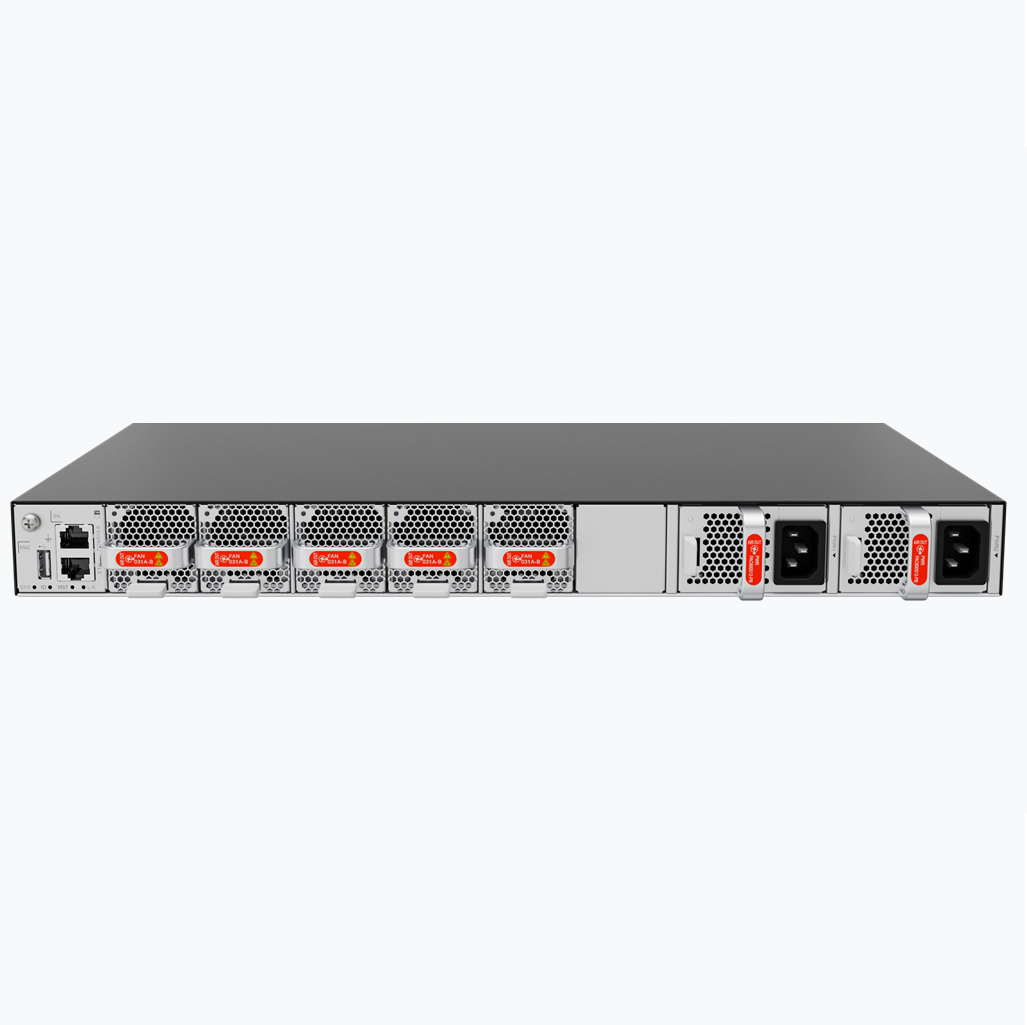 CloudMatrix 8600系列交换机包括CloudMatrix 8655-32CQ4BQ一款设备形态,可以通过配置不同风向的电源和风扇来实现风向前进后出或后进前出两种模式。